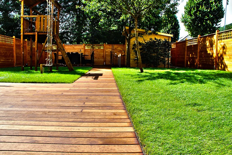 Le bois, qu’il soit exotique ou non, est présent dans de nombreux jardins. Par exemple, on peut s’en servir pour la construction de terrasses, palissades, abris de jardin, car-ports, clôtures, pontons, cheminements, cabanons, aires de jeux pour les enfants, pergolas, ponts, passerelles, mobilier d’extérieur, bardage, etc.